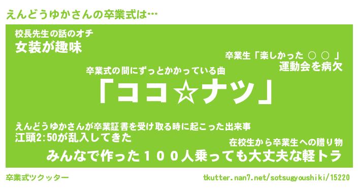 | 伝説のあだ名 | 『不死鳥のスナイパーえんどうゆか』 |
