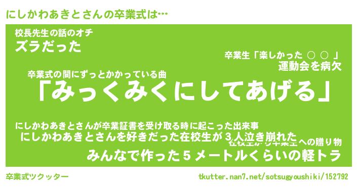 | 胡散臭い通販商品みたいなあだ名 | 『必ず成功するブレスレット…その名も「にしかわあきと」』 |