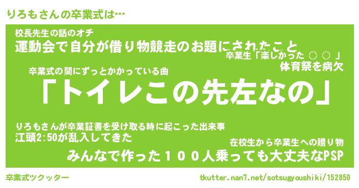 | ヘコむあだ名 | 『りろもー』『つくし』『りろぷりん』 |