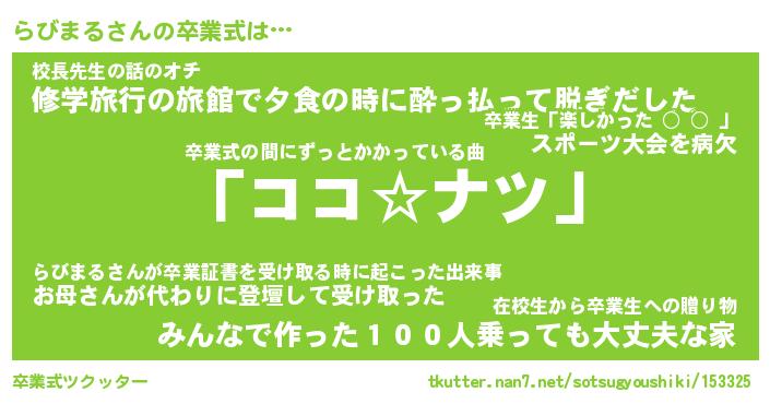 | 意味不明あだ名 | 『ペロリンらびまる』『永久保存らびまる』 |