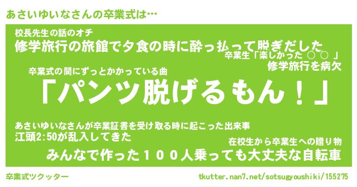 | ヘコむあだ名 | 『あさっふぃ~』『牛乳』 |