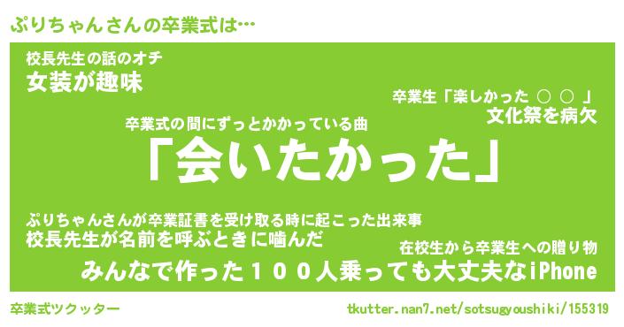 | ヘコむあだ名 | 『ぷりっふぃ~』『なまこ酢』 |