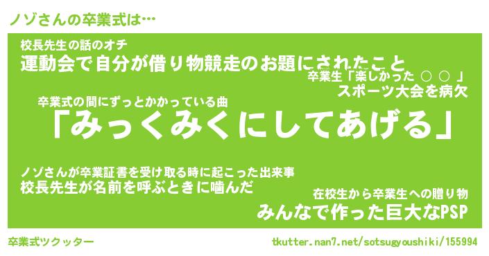 | ヘコむあだ名 | 『ノゾっふぃ~』『なまこ酢』 |