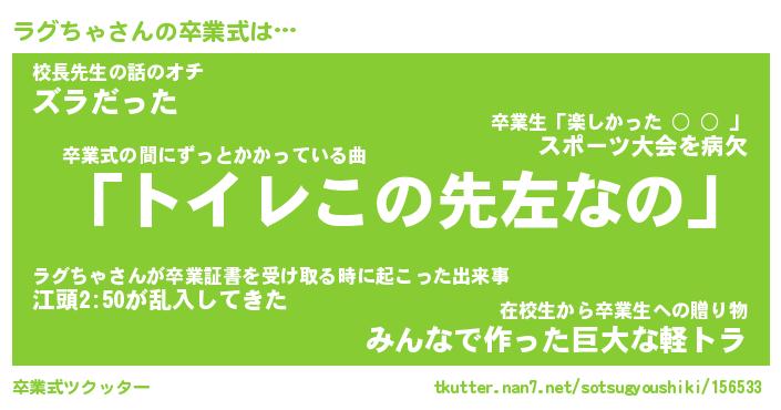| ヘコむあだ名 | 『ラグっふぃ~』『なまこ酢』 |