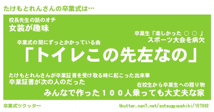 | 胡散臭い通販商品みたいなあだ名 | 『必ず成功する霊験あらたかなお札…その名も「たけもとれん」』 |