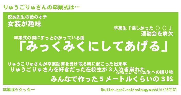 | 男性向けラノベタイトル風あだ名 | 『りゅうごりゅの憂鬱』 |