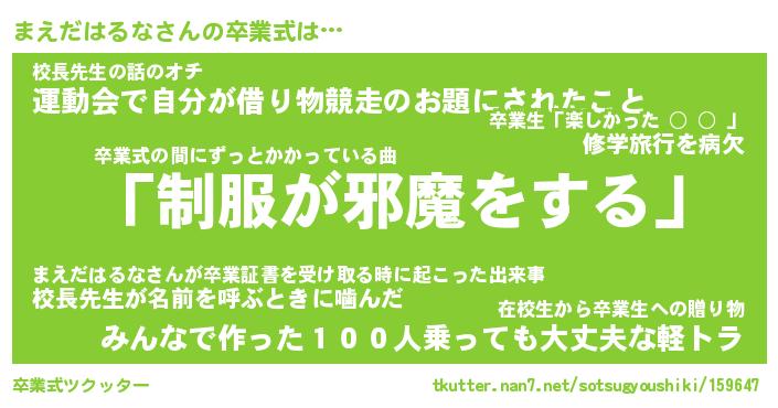 | 女子向けラノベタイトル風あだ名 | 『誰かこのまえだはるなを説明してください! ~契約から始まるウェディング~』 |