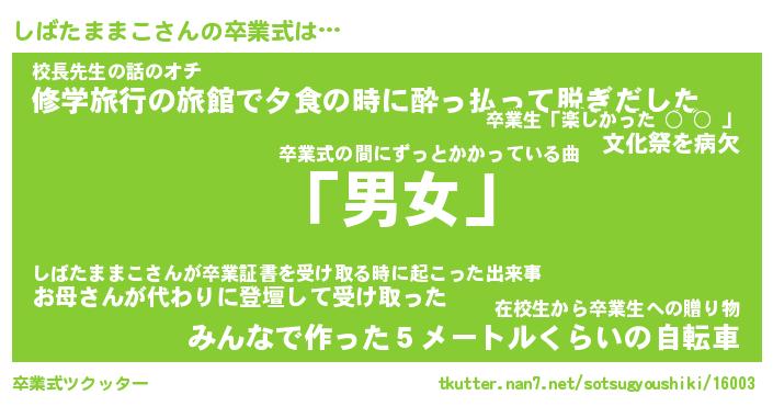 | 伝説のあだ名 | 『伝説のスナイパーしばたままこ』 |