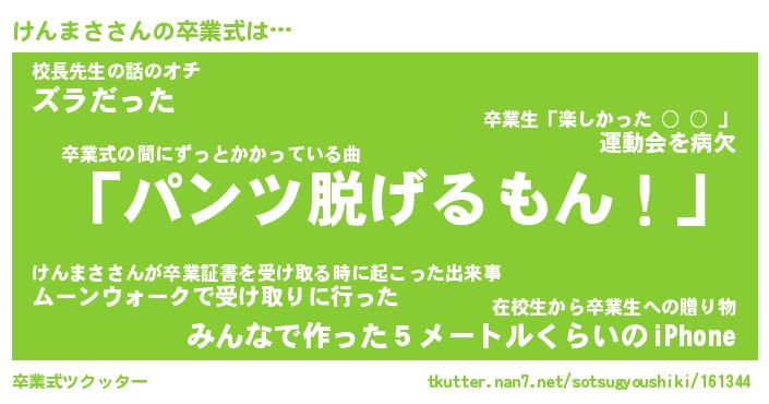| 意味不明あだ名 | 『ペロリンけんまさ』『永久保存けんまさ』 |