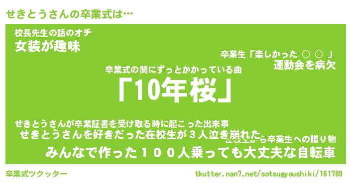 | 意味不明あだ名 | 『ペロリンせきとう』『永久保存せきとう』 |