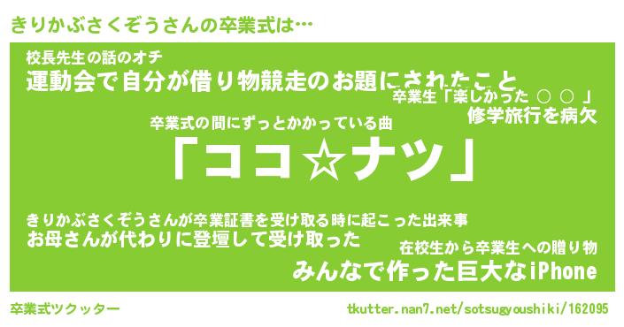 | ヘコむあだ名 | 『きりにゅー』『つくし』『きりお』 |