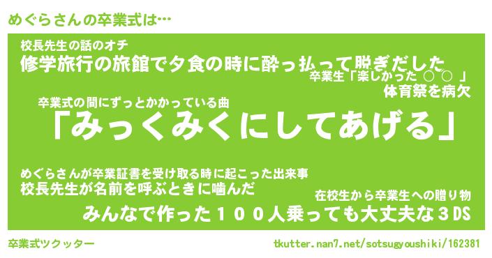 | 胡散臭い通販商品みたいなあだ名 | 『必ず成功するブレスレット…その名も「めぐら」』 |