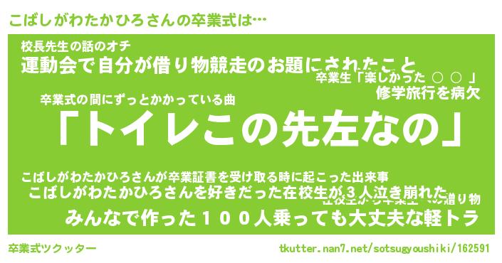 | 胡散臭い通販商品みたいなあだ名 | 『必ず成功する霊験あらたかなお札…その名も「こばしがわたかひろ」』 |