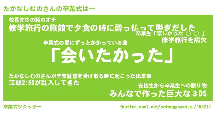 | 伝説のあだ名 | 『不死鳥のスナイパーたかなしむの』 |
