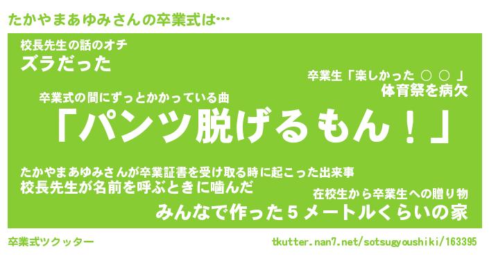 | 伝説のあだ名 | 『不死鳥のスナイパーたかやまあゆみ』 |