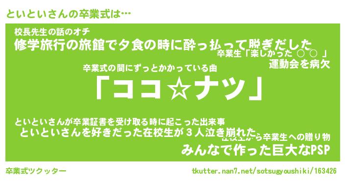 | ヘコむあだ名 | 『といもー』『豆乳』『といお』 |