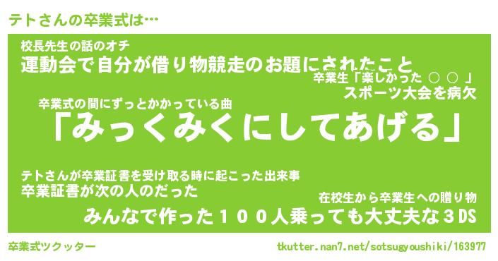 | ヘコむあだ名 | 『テトにゅー』『つくし』『テト(爆)』 |