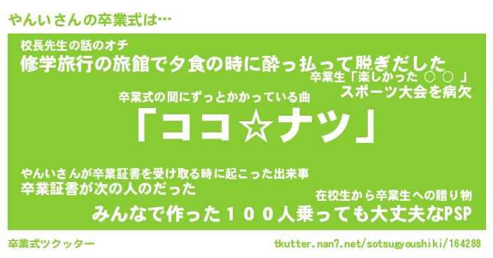 | ピコ太郎風あだ名 | 『ヤコ一郎』『ピヤ十郎』『ヤン六郎』 |