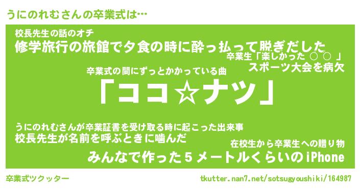| ヘコむあだ名 | 『うにもー』『豆乳』『うに太郎』 |