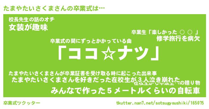 | 伝説のあだ名 | 『不死鳥のスナイパーたまやたいさくま』 |