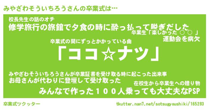 | 胡散臭い通販商品みたいなあだ名 | 『モテモテ間違いなし霊験あらたかなお札…その名も「みやざわそういちろう」』 |