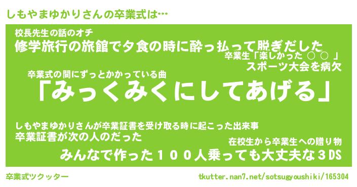 | 胡散臭い通販商品みたいなあだ名 | 『必ず成功するブレスレット…その名も「しもやまゆかり」』 |
