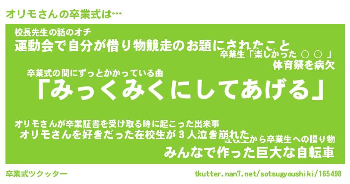 | 胡散臭い通販商品みたいなあだ名 | 『必ず成功する霊験あらたかなお札…その名も「オリモ」』 |