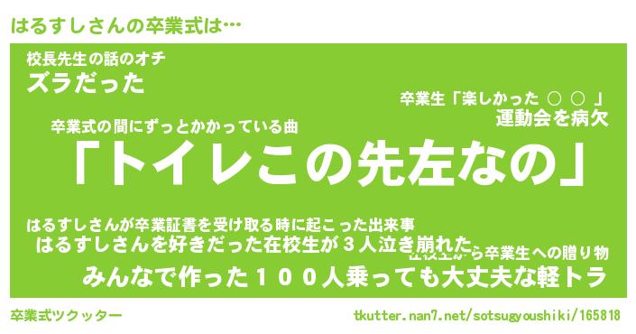 | 伝説のあだ名 | 『伝説のスナイパーはるすし』 |