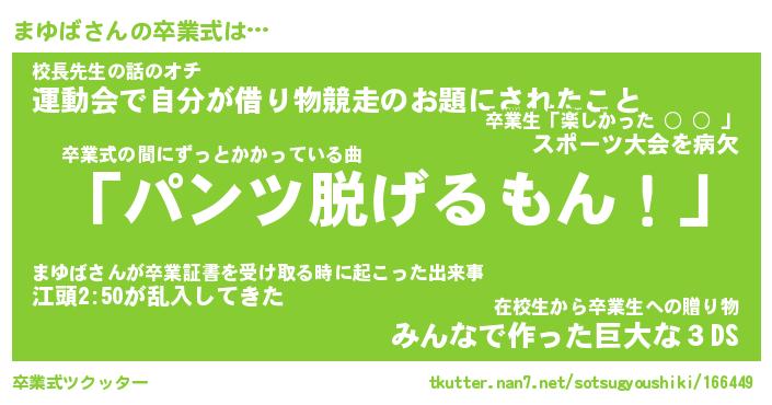 | ヘコむあだ名 | 『まゆにゅー』『つくし』『まゆ太郎』 |