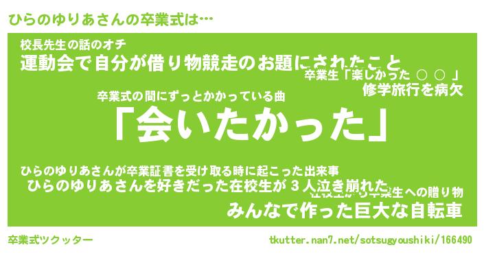 | 伝説のあだ名 | 『不死鳥のスナイパーひらのゆりあ』 |