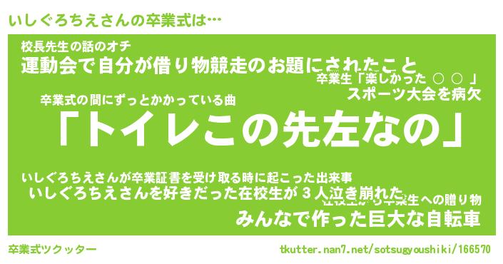 | 胡散臭い通販商品みたいなあだ名 | 『必ず成功するブレスレット…その名も「いしぐろちえ」』 |