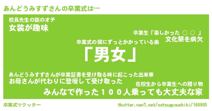 | 恥ずかしいあだ名 | 『プリティーあんどうみすず』『あんちん』 |