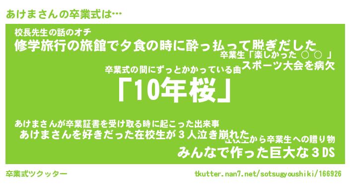 | ヘコむあだ名 | 『あけにー』『レバニラ』『あけを』 |