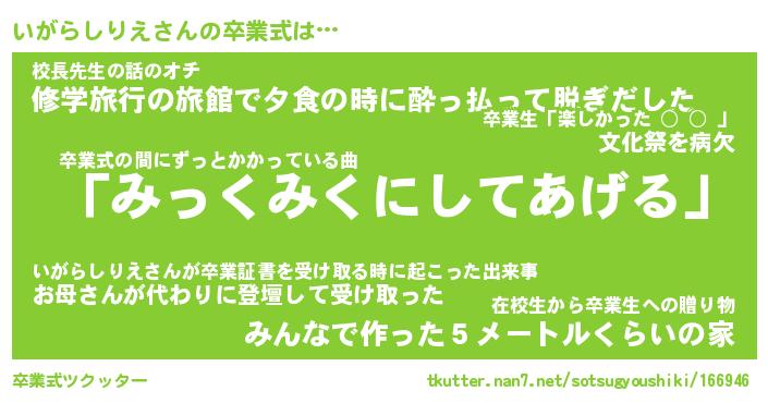 | 胡散臭い通販商品みたいなあだ名 | 『必ず成功するブレスレット…その名も「いがらしりえ」』 |