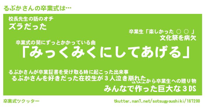 | ヘコむあだ名 | 『るぶもー』『なまこ酢』『るぶお』 |