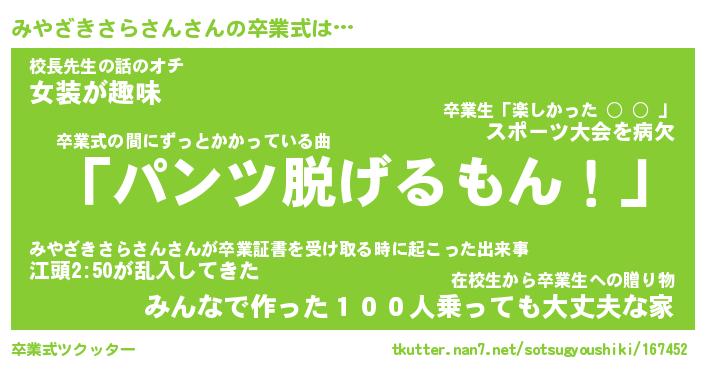 | 胡散臭い通販商品みたいなあだ名 | 『モテモテ間違いなし霊験あらたかなお札…その名も「みやざきさらさん」』 |