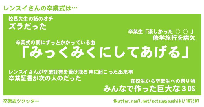 | ヘコむあだ名 | 『レンにー』『つくし』『レンお』 |