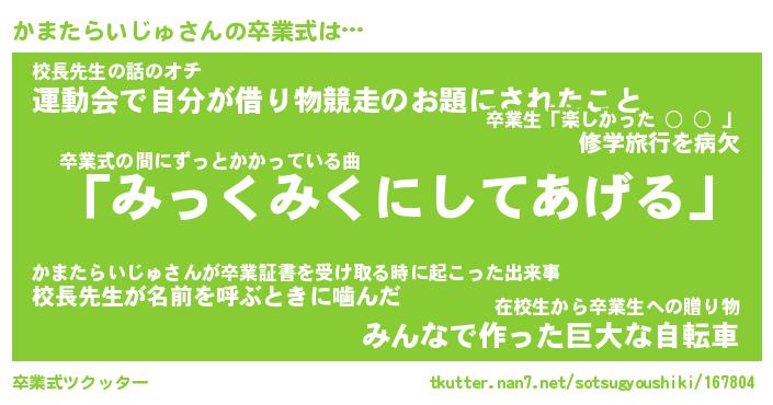 | 欧米人風あだ名 | 『マイケルかまたらいじゅ』 |