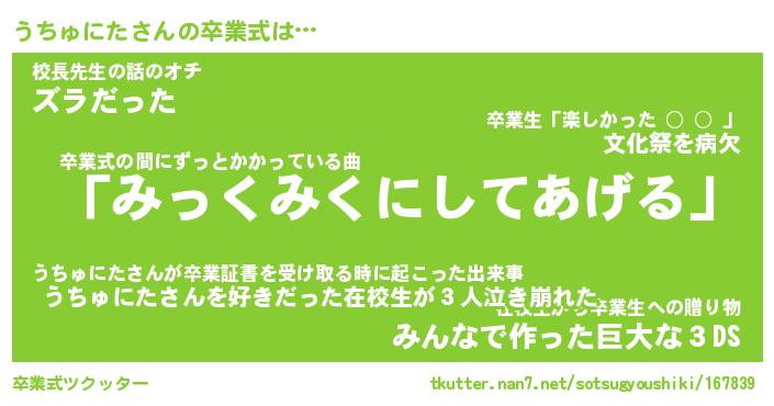 | 肩書あだ名 | 『うちゅにた社長』『うちゅにた大統領』 |
