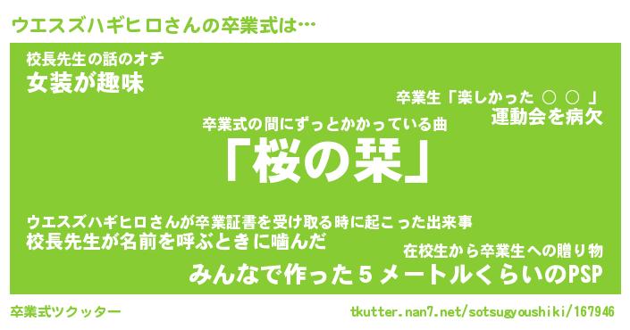 | ピコ太郎風あだ名 | 『ウコ二郎』『ピウ五郎』『ウエ四郎』 |