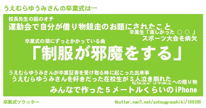 | 胡散臭い通販商品みたいなあだ名 | 『億万長者になれる霊験あらたかなお札…その名も「うえむらゆうみ」』 |