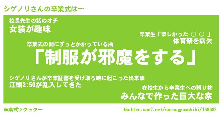 | ピコ太郎風あだ名 | 『シコ太郎』『ピシ一郎』『シゲ四郎』 |
