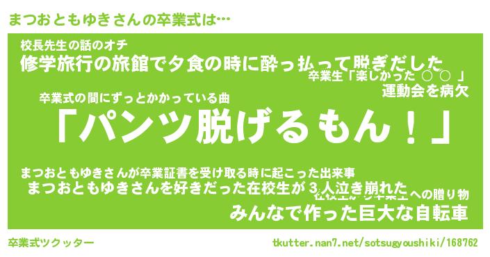 | 肩書あだ名 | 『まつおともゆき店長』 |