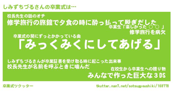 | 肩書あだ名 | 『しみずちづる店長』『しみずちづる校長』 |
