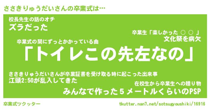 | 胡散臭い通販商品みたいなあだ名 | 『必ず成功するブレスレット…その名も「ささきりゅうだい」』 |