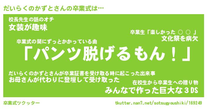 | ヘコむあだ名 | 『だいにー』『つくし』『だい太郎』 |