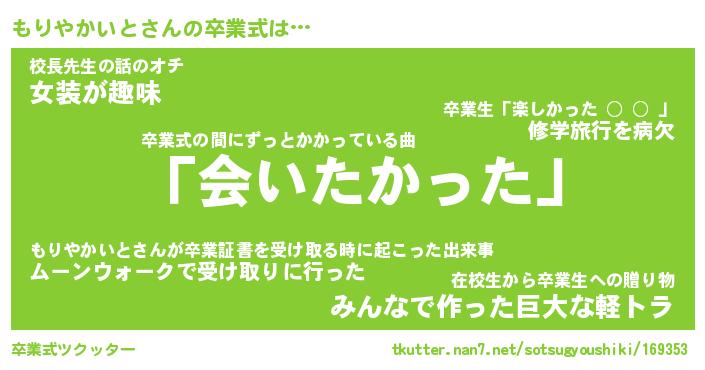 | ヘコむあだ名 | 『もりにゅー』『酢こんぶ』『もりを』 |