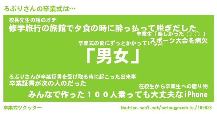 | 伝説のあだ名 | 『伝説のスナイパーろぶり』 |