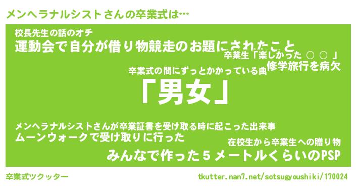 | 番長 | メンヘラナルシスト、またの名を・・・!『だっちゅーのメンヘラナルシスト番長』 |