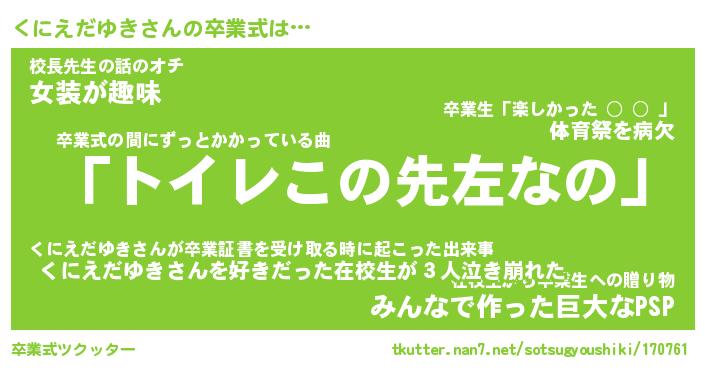 | 伝説のあだ名 | 『伝説のスナイパーくにえだゆき』 |